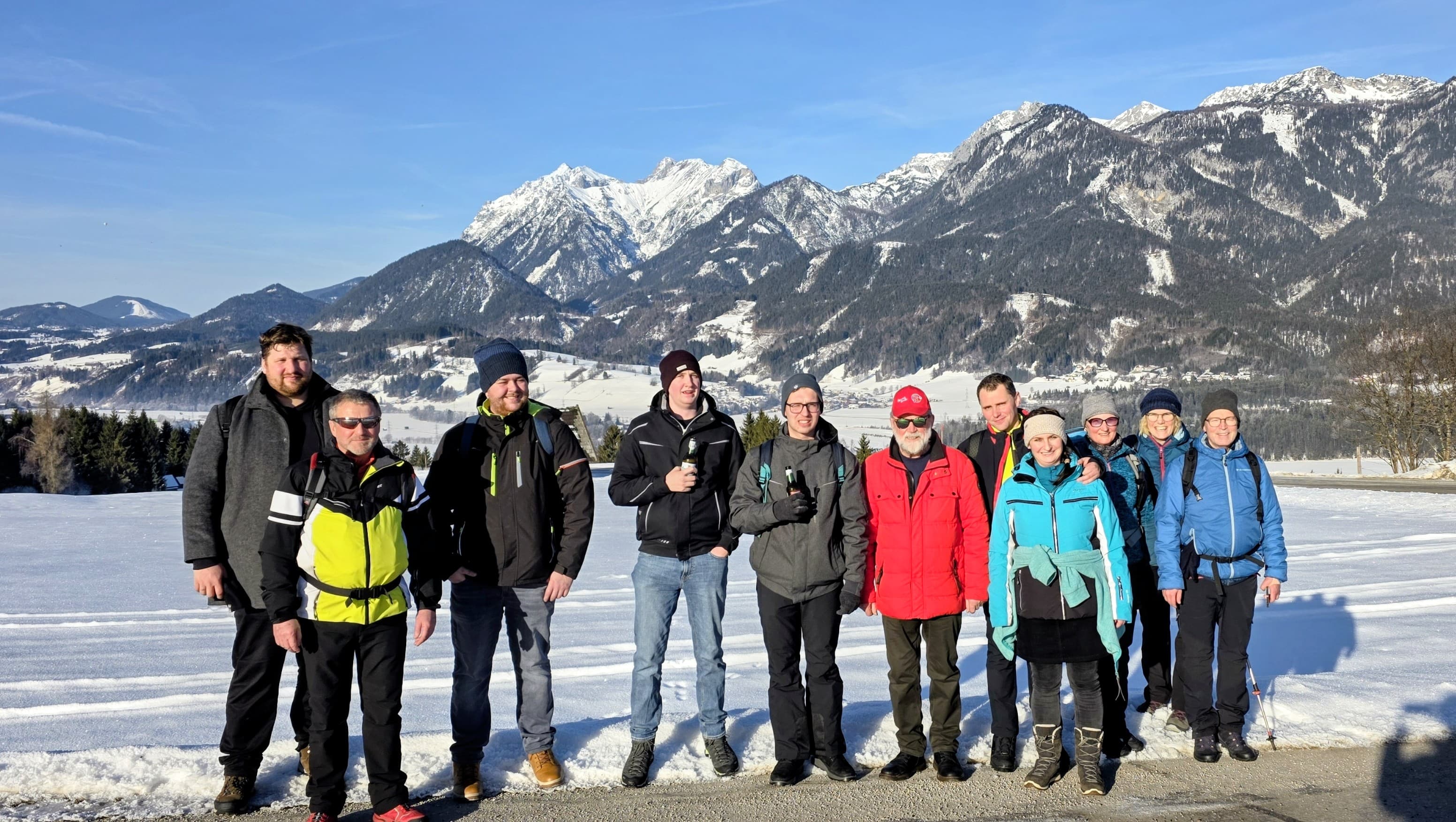 Für die Skifahrer ging es auf die Piste am Hauser Kaibling, wo der Spaß am gemeinsamen Skifahren im Vordergrund stand. Aber auch für die Nicht-Skifahrer wurde ein abwechslungsreiches Alternativprogramm geboten: Sie nahmen an einer gemeinsamen Winterwanderung zum Steirischen Bodensee teil, die durch ein unterhaltsames Plattelturnier abgerundet wurde. Dabei standen vor allem Kameradschaft und gute Laune im Mittelpunkt.