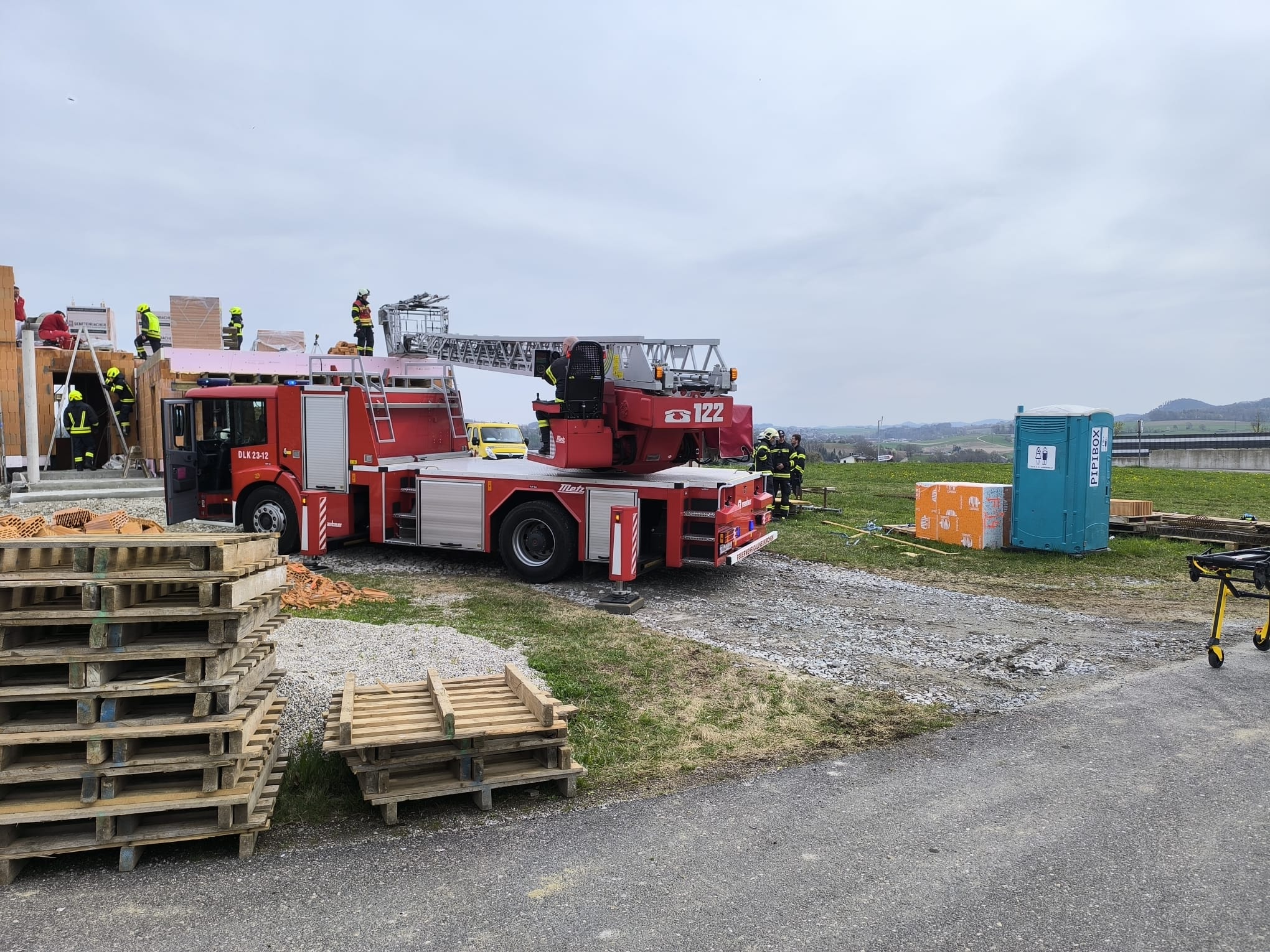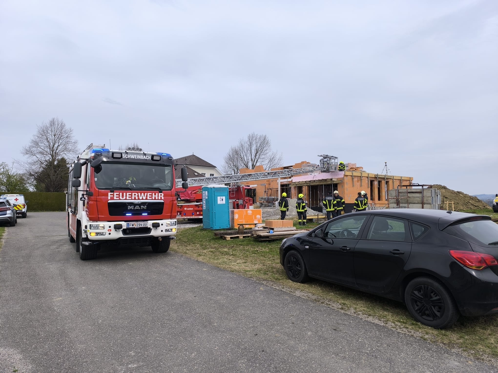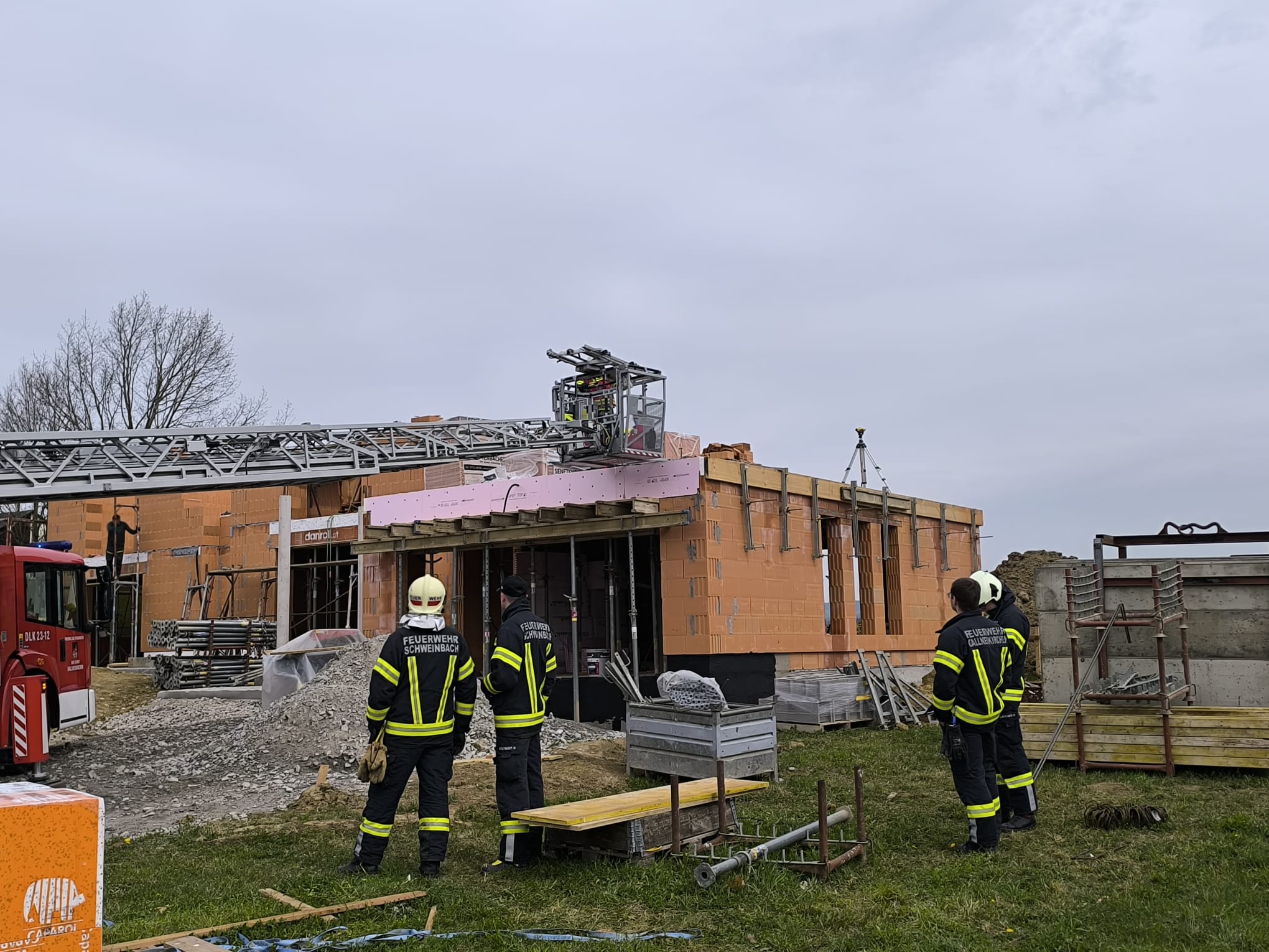 Aus unbekannter Ursache kam eine Person auf einer Baustelle zu Sturz. Aufgrund des Risikos einer Rückenverletzung alarmierten die anwesenden Rettungssanitäter und der Notarzt unsere Feuerwehr gemeinsam mit der Drehleiter aus Gallneukirchen, um die Person möglichst schonend vom 1. Obergeschoss herunter zu transportieren.