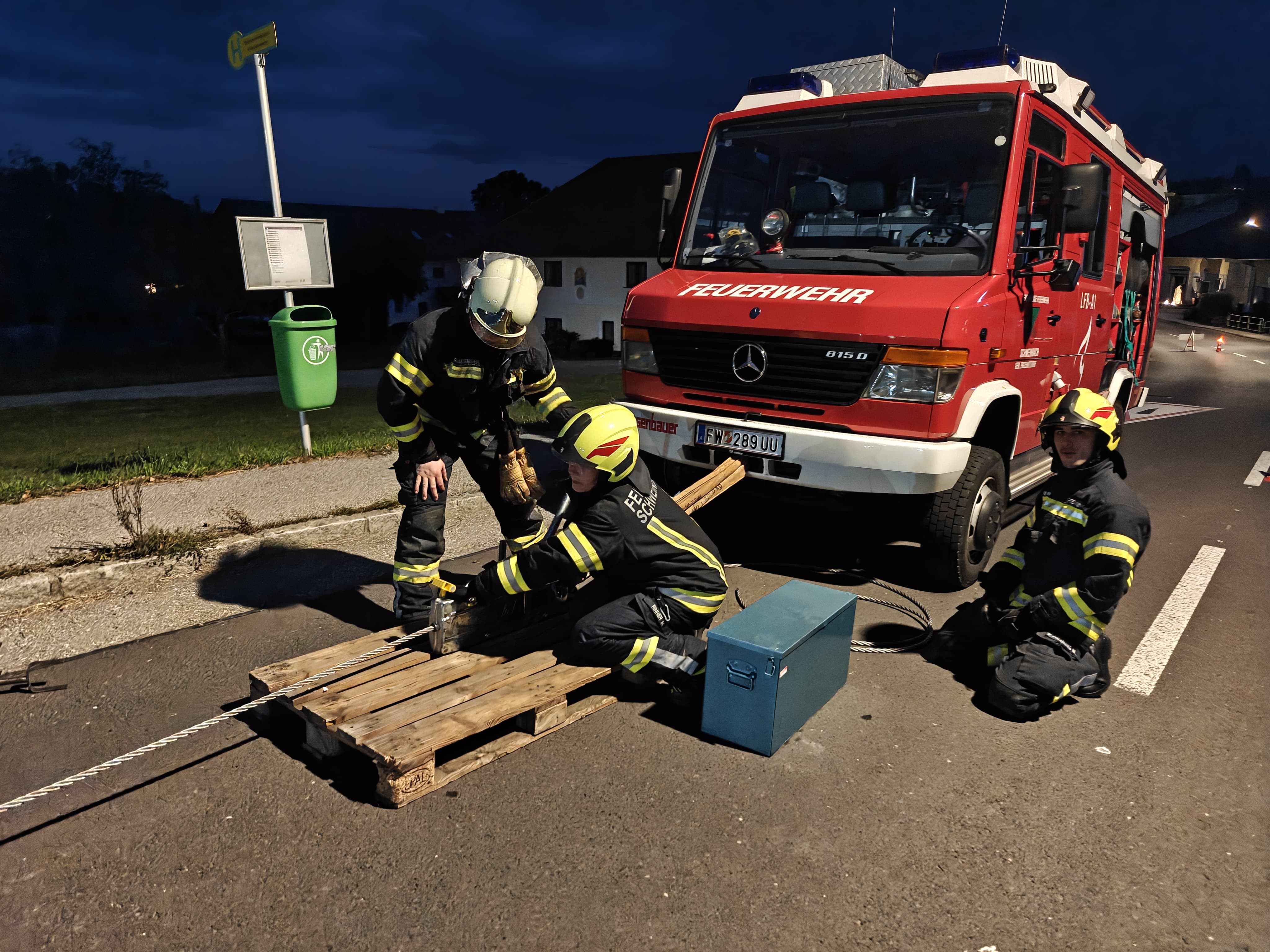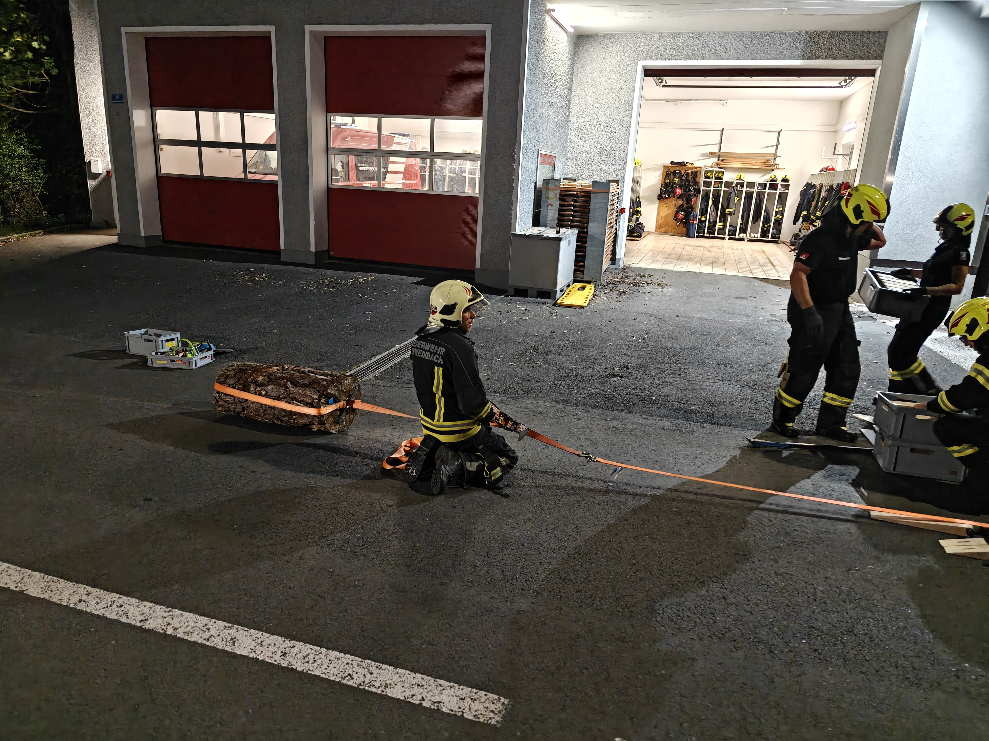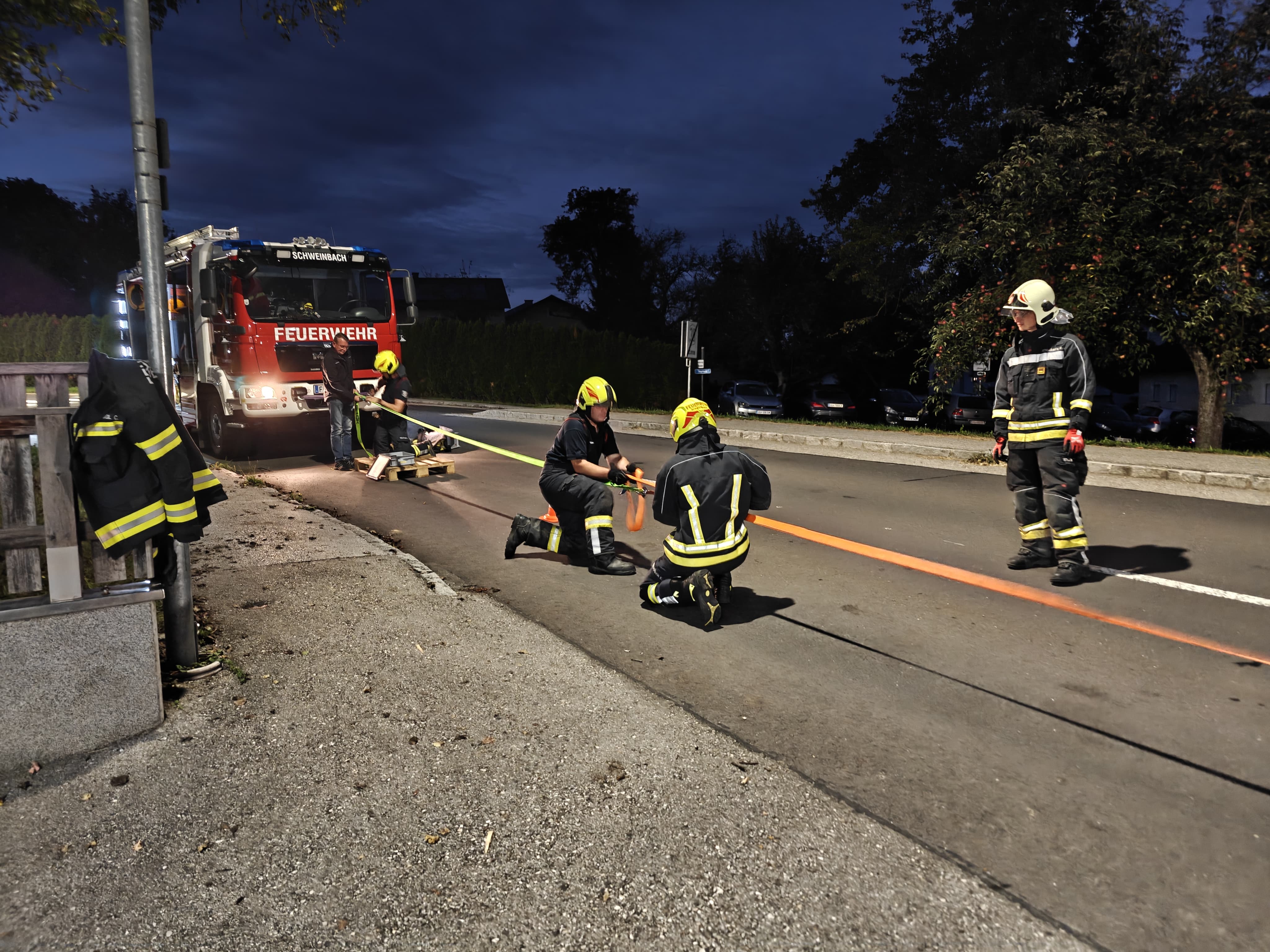 Die anwesende Mannschaft wurde auf zwei Teams aufgeteilt und den beiden taktischen Fahrzeugen TLF und LFB zugewiesen.