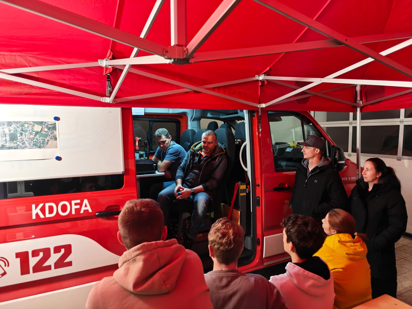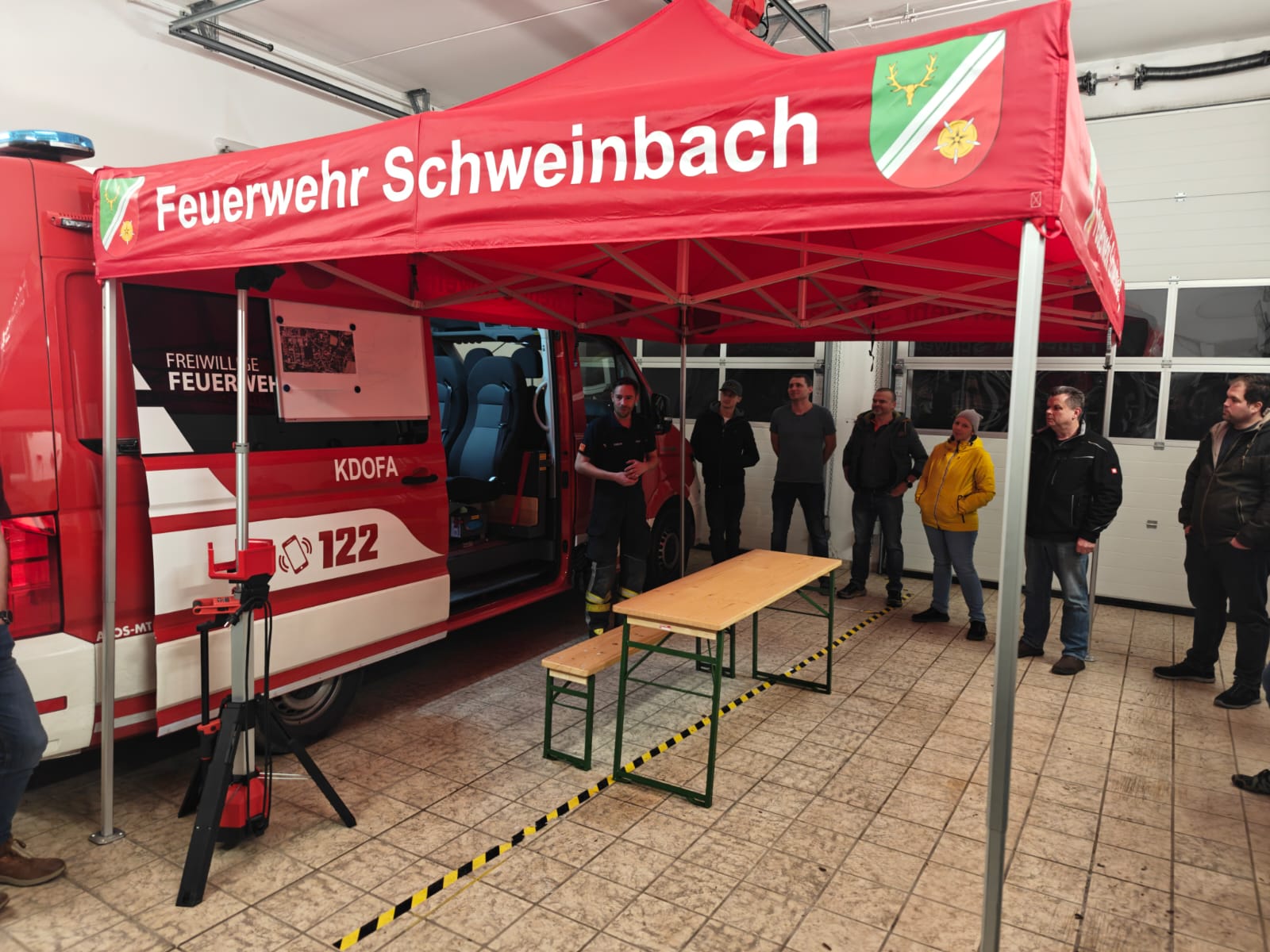 Da unser neues KDOF mit einigen neuen Geräten und Möglichkeiten ausgestattet ist, muss dieses auch ausreichend beübt werden. Vor allem bei größeren Einsätzen, wo es sinnvoll ist, eine Einsatzleitstelle einzurichten, kann dieses neue Fahrzeug sehr hilfreich sein. Unter anderem ist in unserem neuen Kommandofahrzeug ein Laptop inkl. einem fest montierten Bildschirm verstaut. Außerdem gibt es einen Drucker, eine Magnettafel und sogar WLAN führen wir im Auto mit.