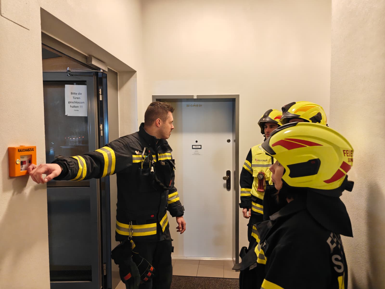 Übungsobjekt waren die neueren Wohnblöcke in der Amtshausstraße. Dort wurde einmal ein Wohnungs- und einmal ein Tiefgaragenbrand simuliert.